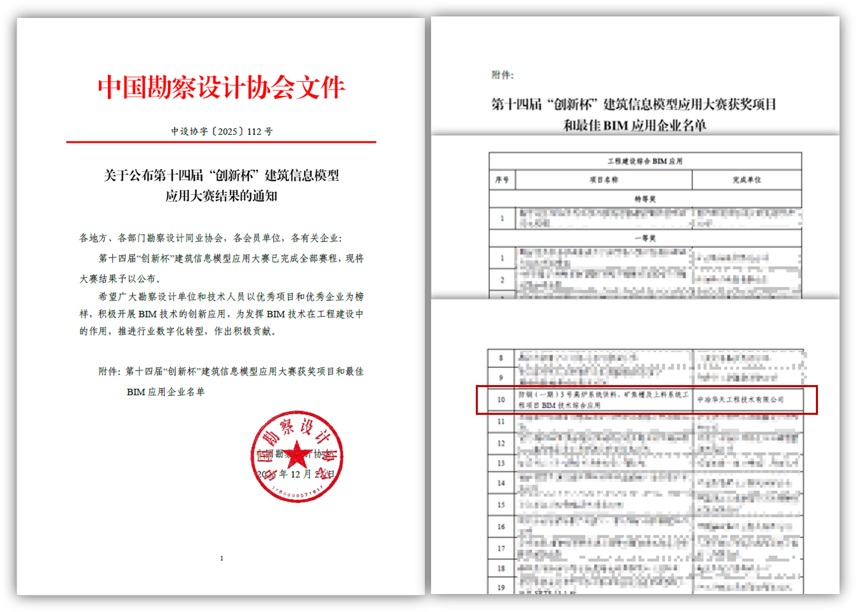 喜報(bào)!中冶華天再獲中國(guó)勘察設(shè)計(jì)協(xié)會(huì)“創(chuàng)新杯”BIM...